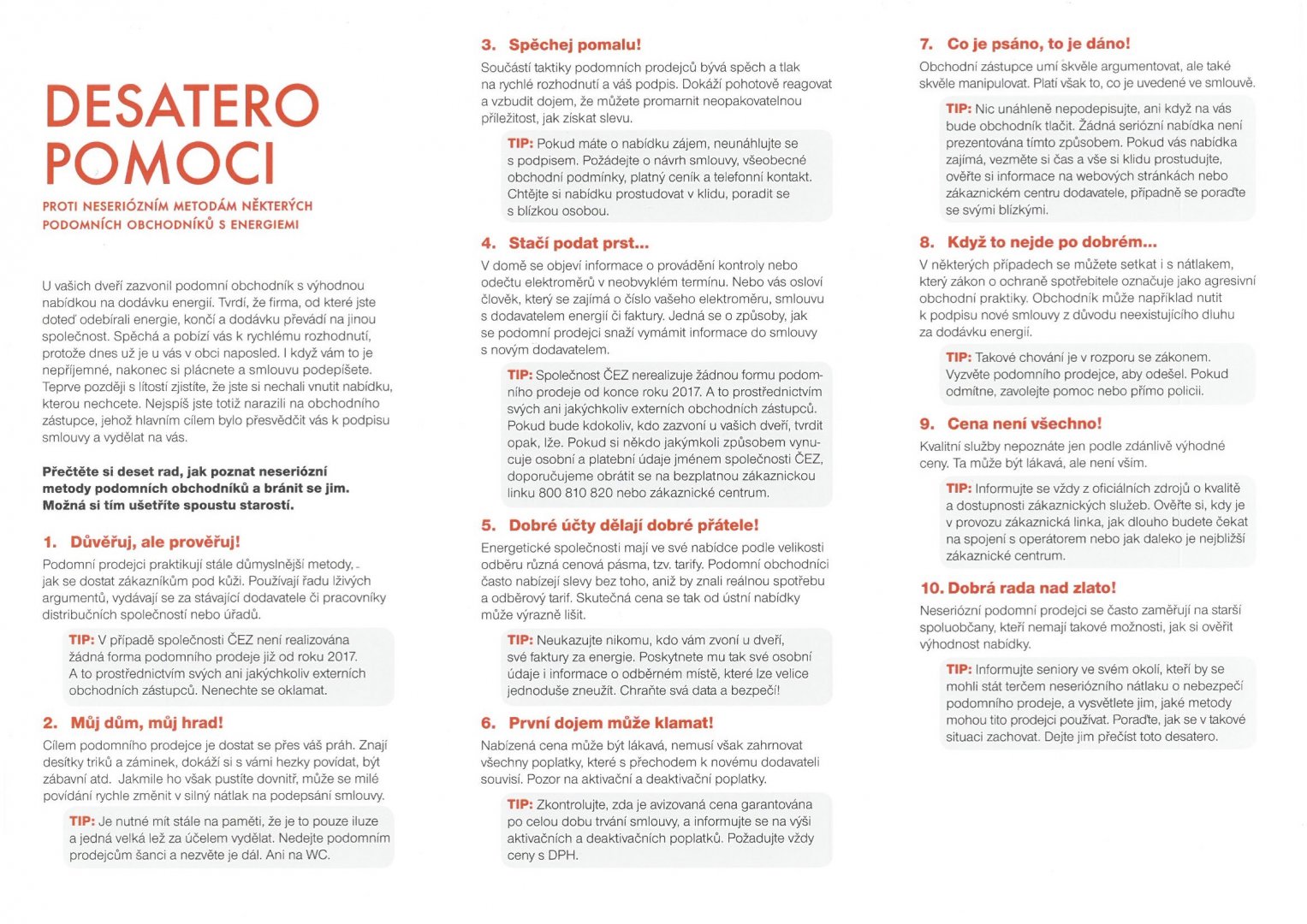 Proti neseriózním metodám některých podomních obchodníků s energiemi. U vašich dveří zazvonil podomní obchodník s výhodnou nabídkou na dodávku energií. Tvrdí, že firma, od které jste doteď odebírali energie, končí a dodávku převádí na jinou společnost.