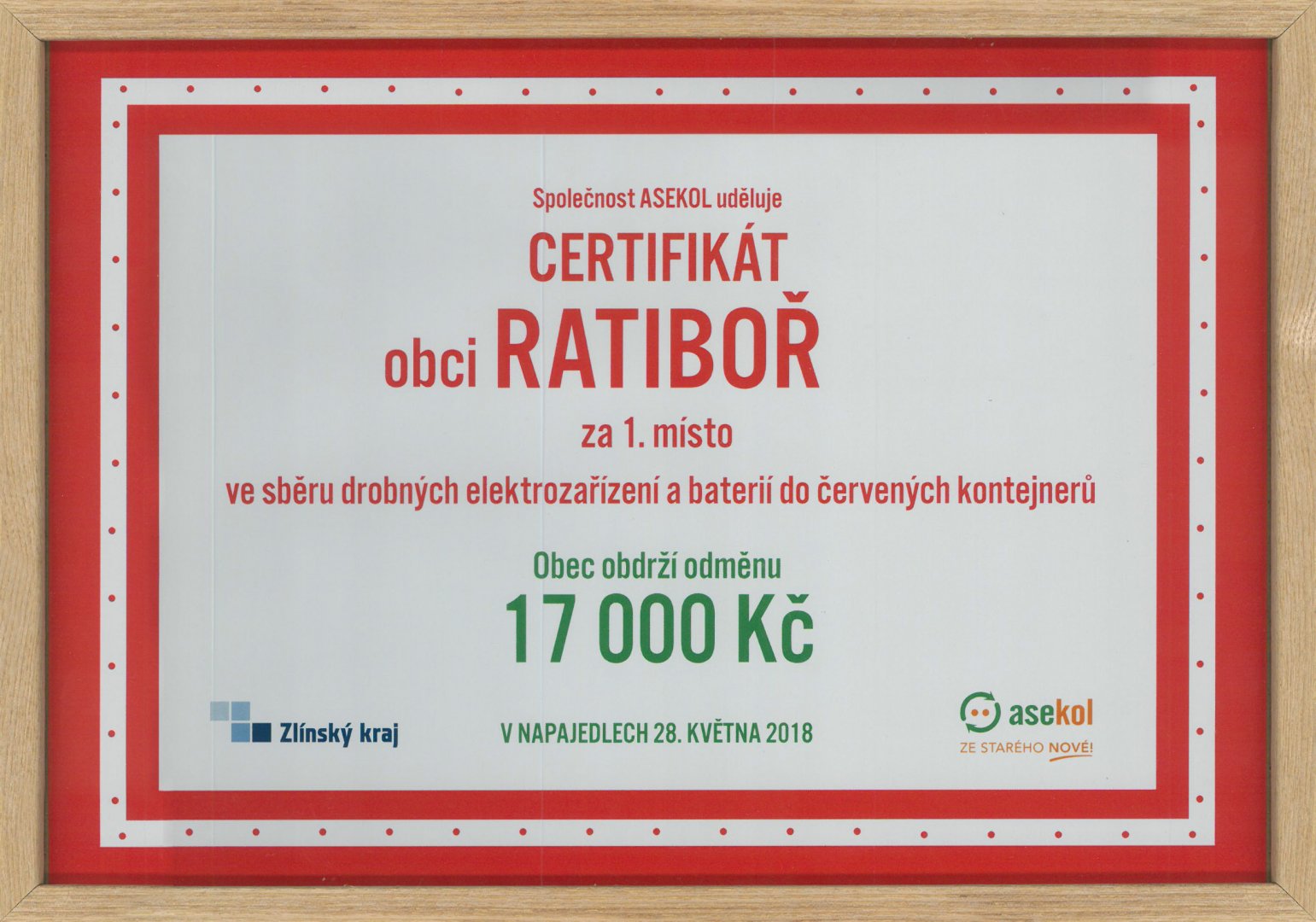 Loni občané odevzdali k recyklaci 6 096,07 kilogramů starých spotřebičů. Snaha obyvatel Ratiboře recyklovat staré a nepoužívané elektrospotřebiče se již několik let vyplácí. Naše obec obdržela certifikát vypovídající o přínosech třídění a recyklace elektrozařízení. Díky environmentálnímu vyúčtování společnosti ASEKOL můžeme nyní přesně vyčíslit, o kolik elektrické energie, ropy, uhlí, primárních surovin či vody jsme díky recyklaci vysloužilého Elektra ušetřili ekosystém Země. Víme také, o jaké množství jsme snížili produkci skleníkových plynů CO2 nebo nebezpečného odpadu. Informace vycházejí ze studií neziskové společnosti ASEKOL, která s obcí dlouhodobě spolupracuje na recyklaci vytříděných elektrozařízení.